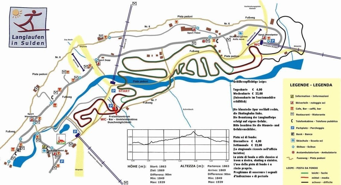 Für Langläufer, die noch mehr Abwechslung suchen, lohnen sich Ausflüge ins Nordische Skizentrum Schlinig, den Austragungsort der Junioren Langlauf-WM 2008 mit 15 km Loipen, und zum Biathlonzentrum Martell mit 12 km Loipen und einer Schießanlage.